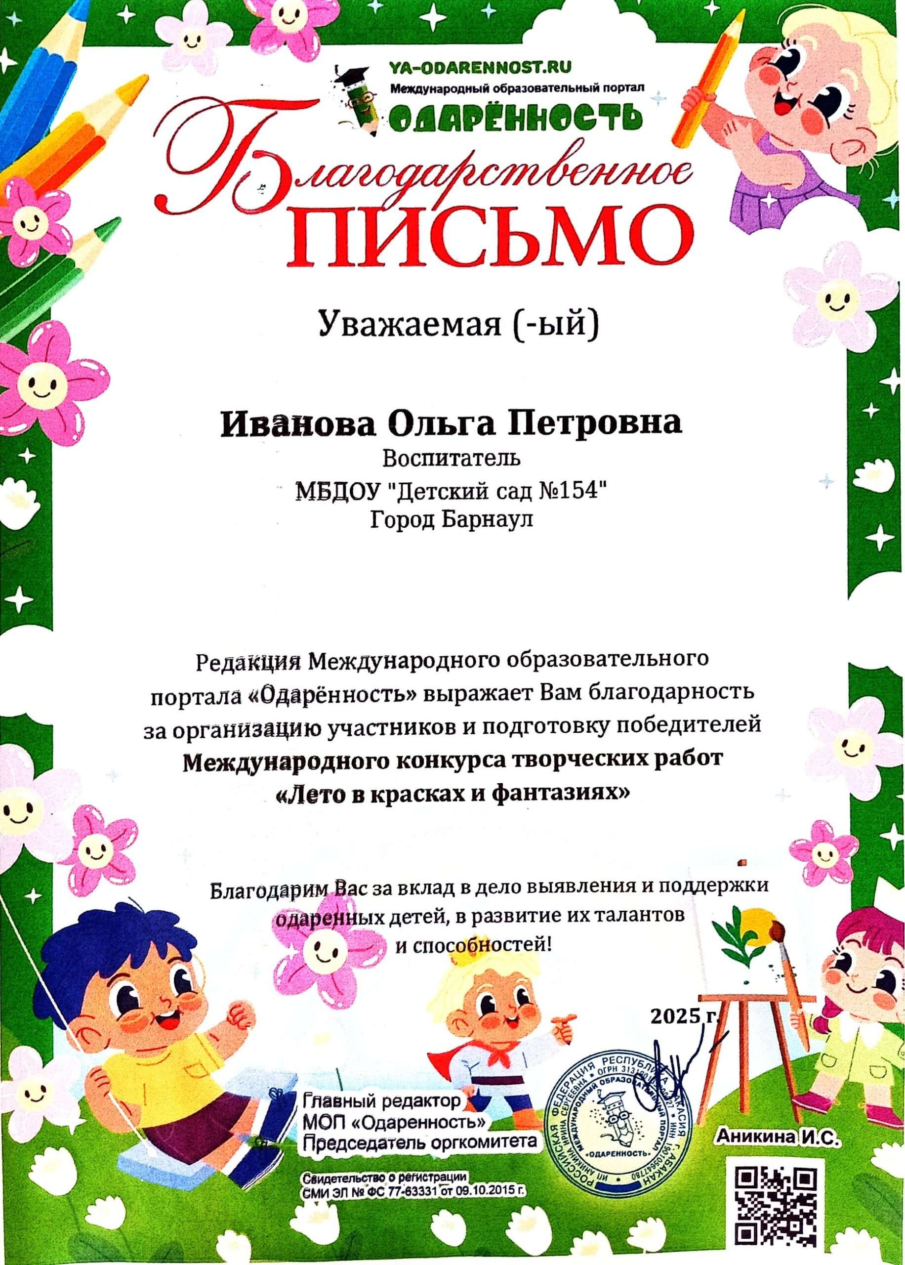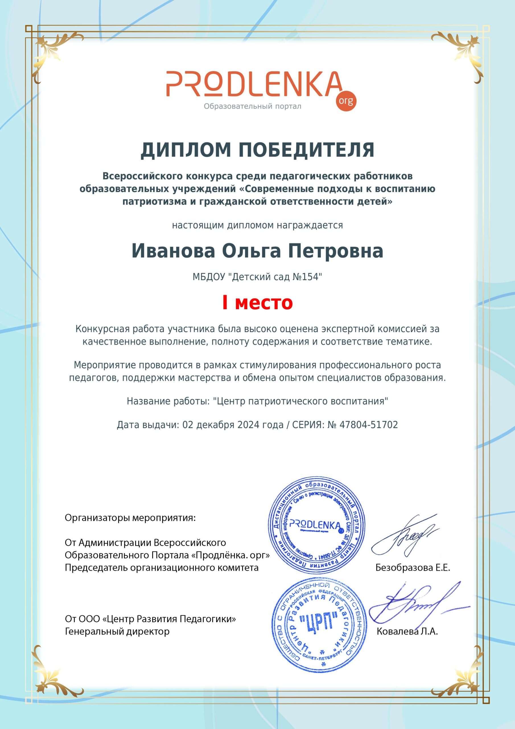 муниципальное бюджетное дошкольное образовательное учреждение "Детский сад № 154 "