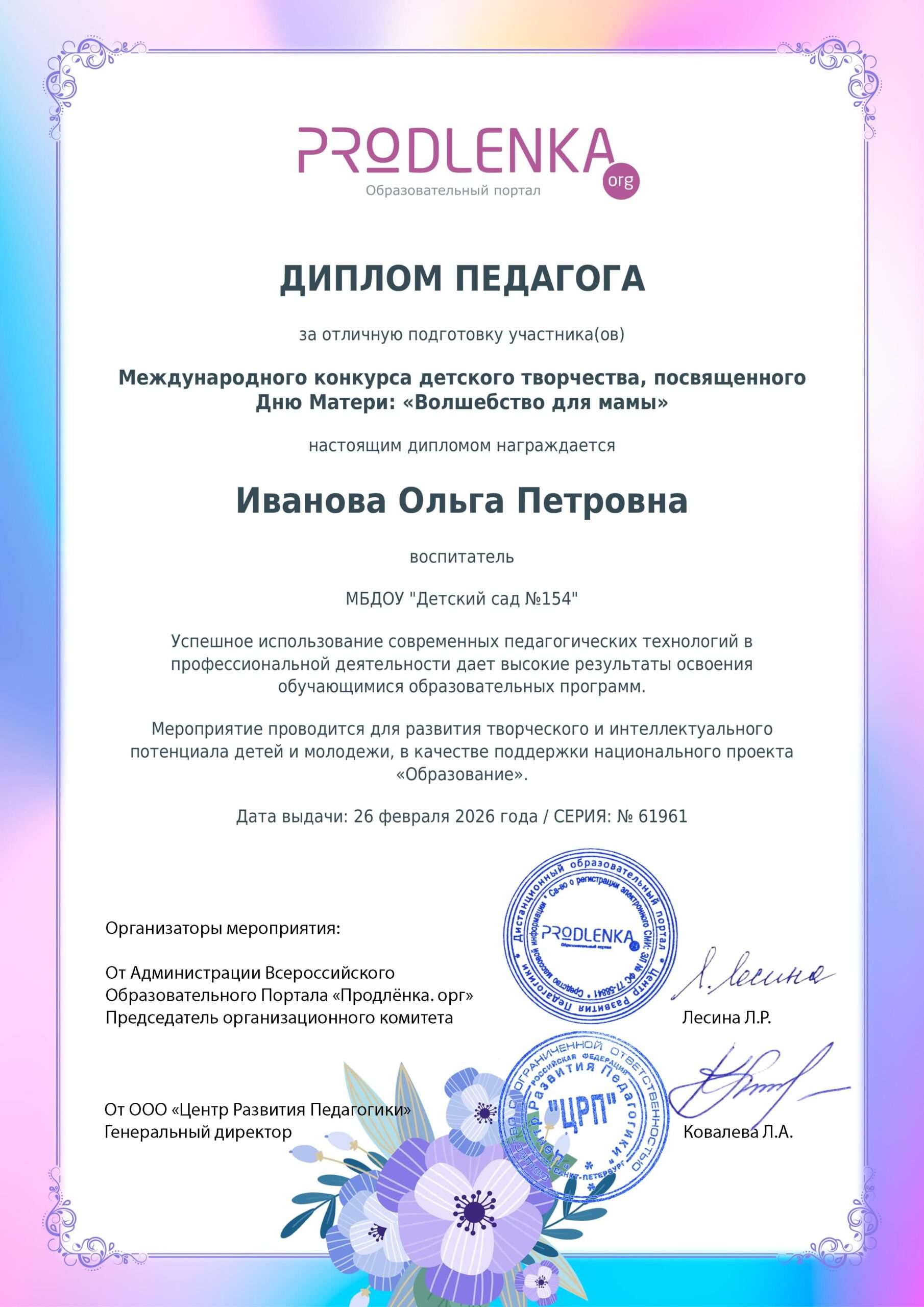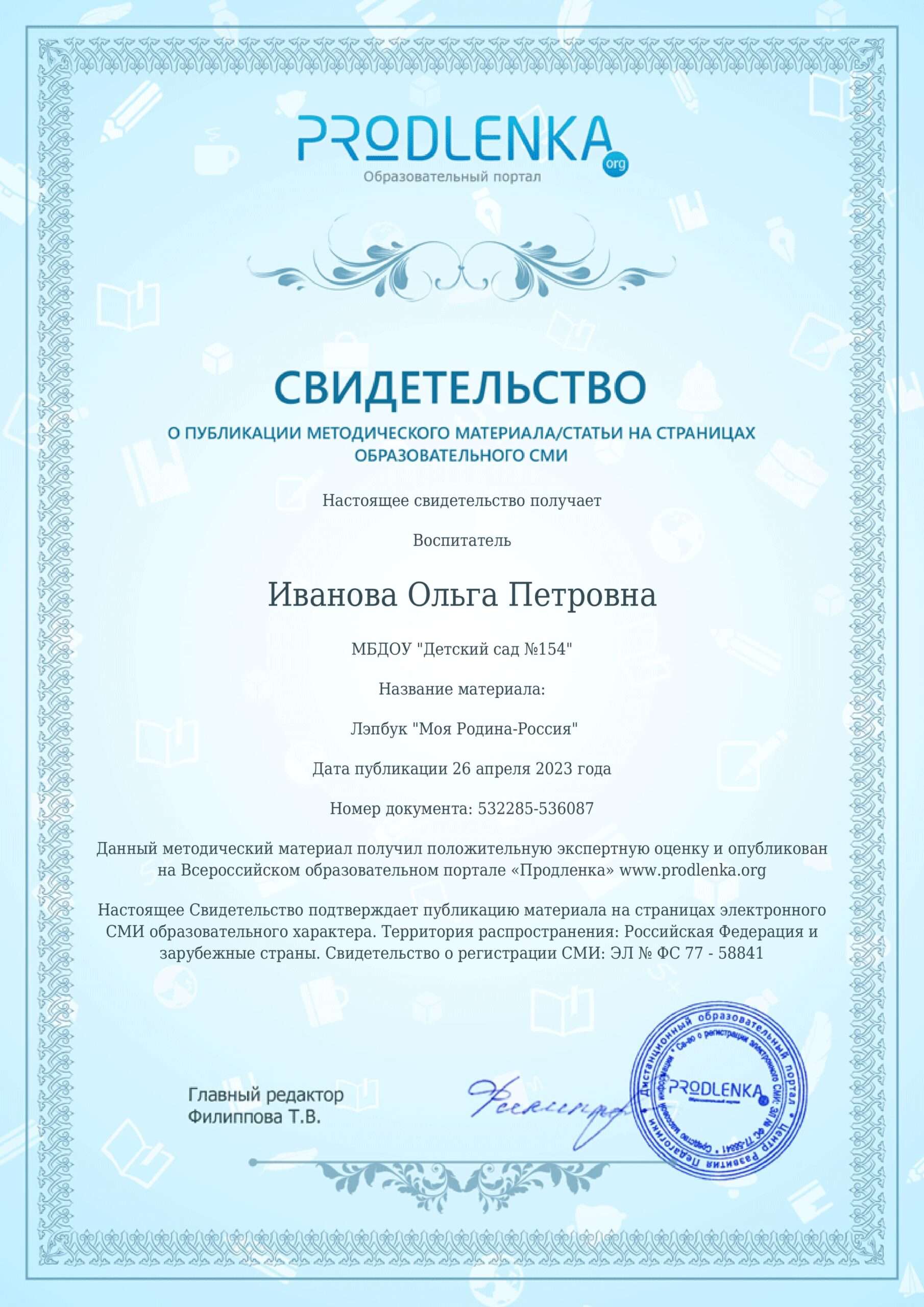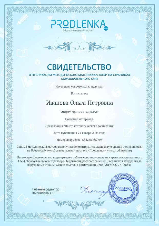 «Достижения педагога»