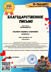 - Диплом победителя (участника) творческого конкурса