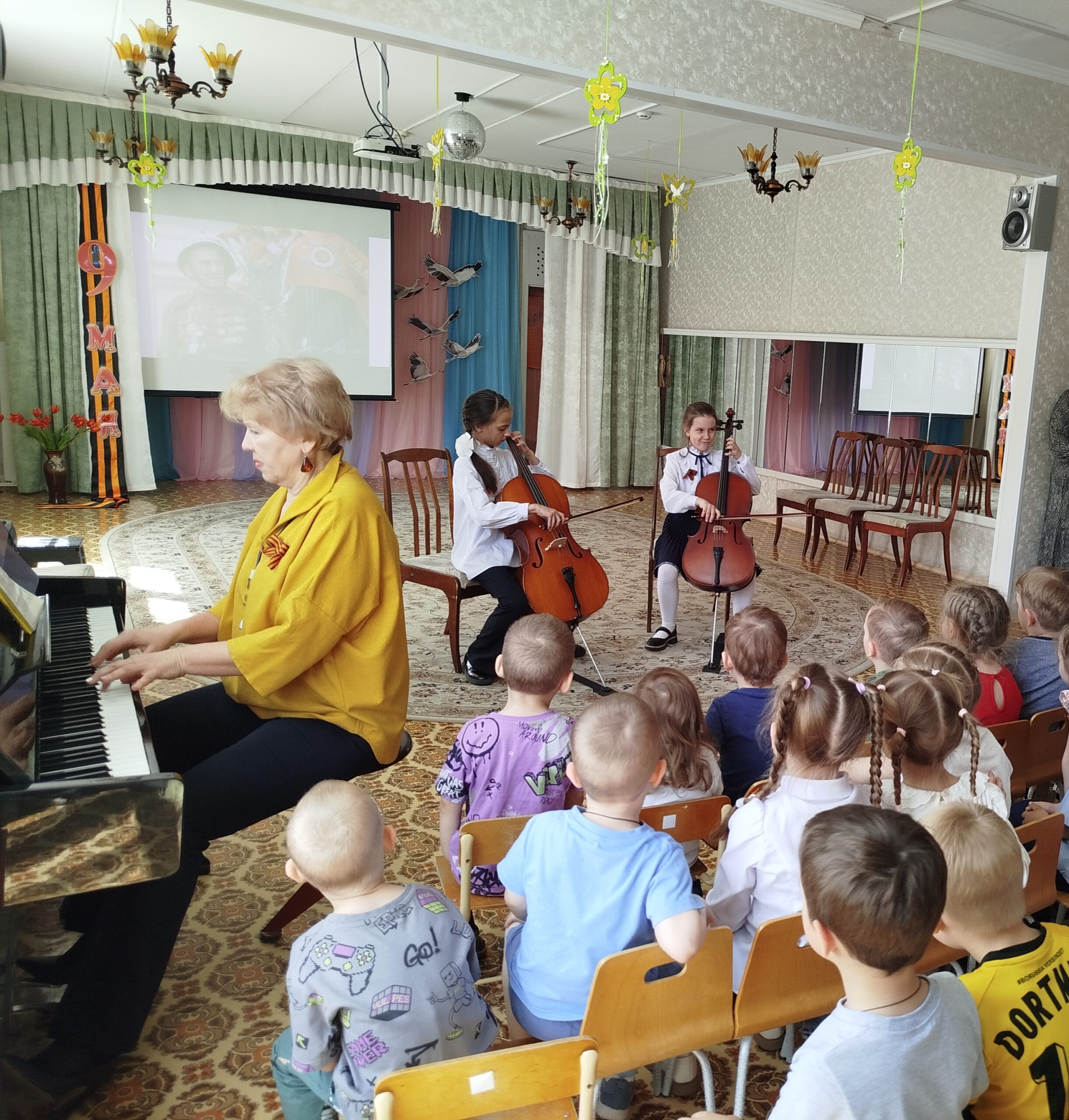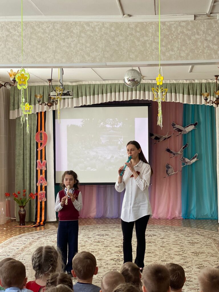 На базе детского сада №154 в преддверии праздника Дня Победы проведено образовательное мероприятие в рамках сетевого взаимодействия с Барнаульской детской музыкальной школой №5 – концерт «Песни Победы: поём и слушаем».