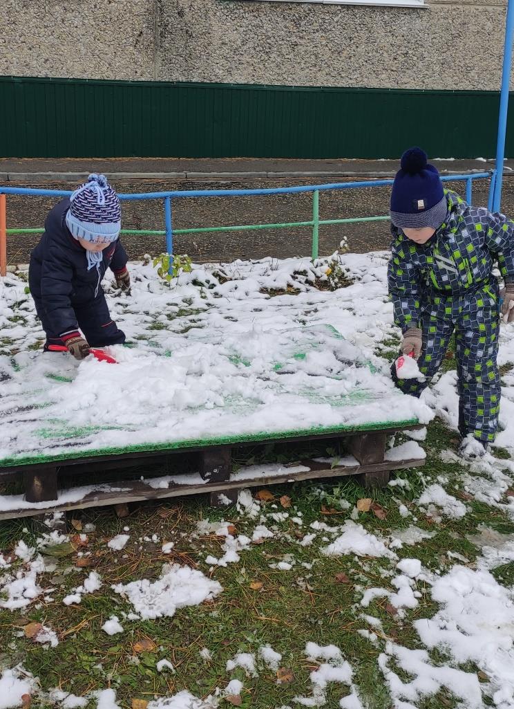 Все немного сырые, чуток испачкали штанишки и перчатки, но довольные и счастливые.