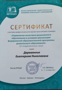 Межрегиональный научно- практический семинар ” Управление качеством дошкольного образования в условиях реализации федеральной образовательной программы дошкольного образования”.