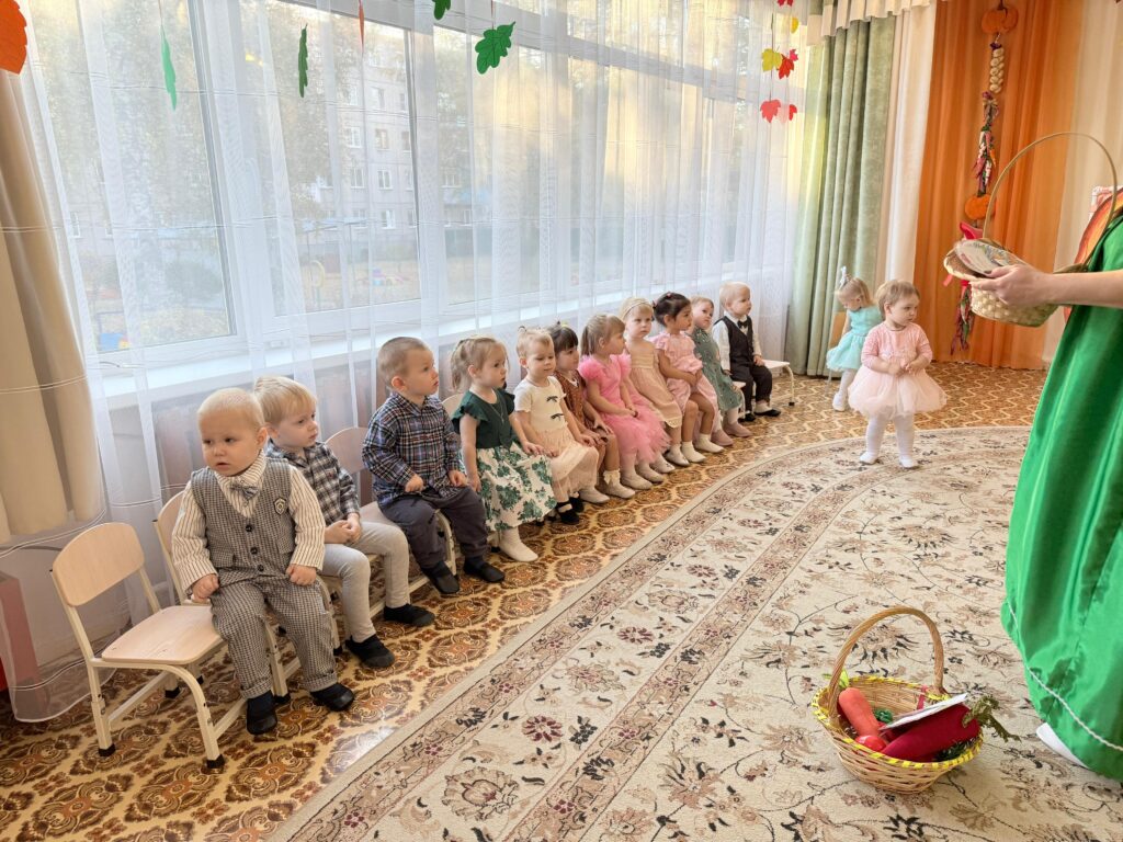 22 октября в ясельной группе “Кораблик” состоялся праздник «Алёнушка в гостях». Яркие краски Осени заворожили многих ребят. Эмоции радости переполняли лица детей.