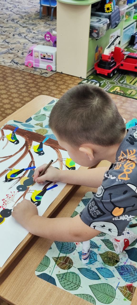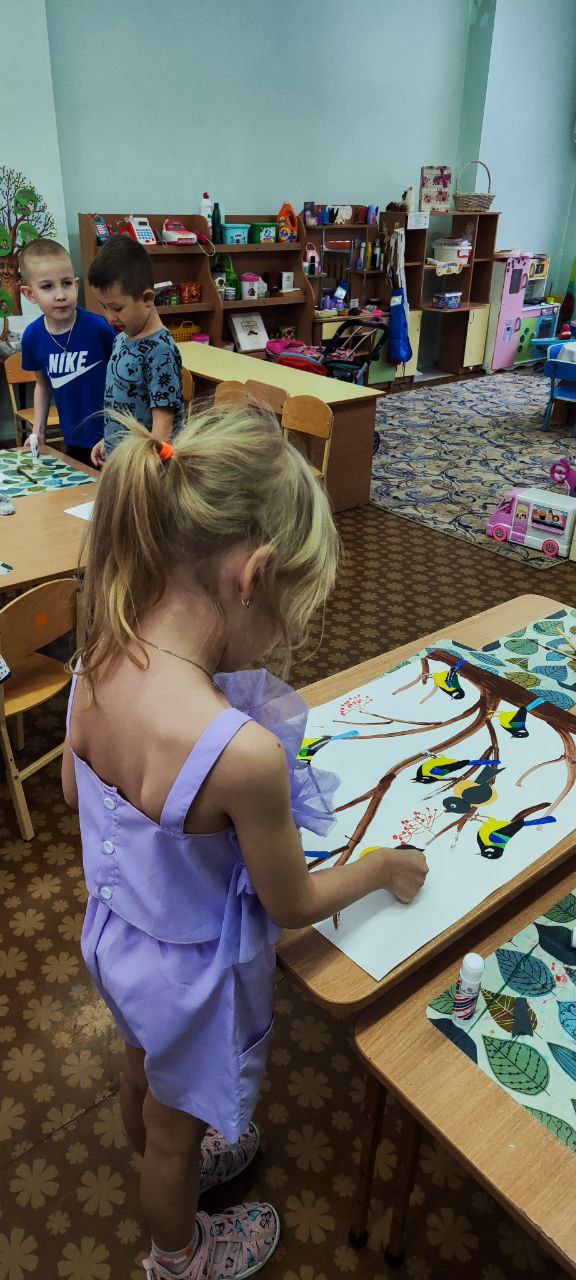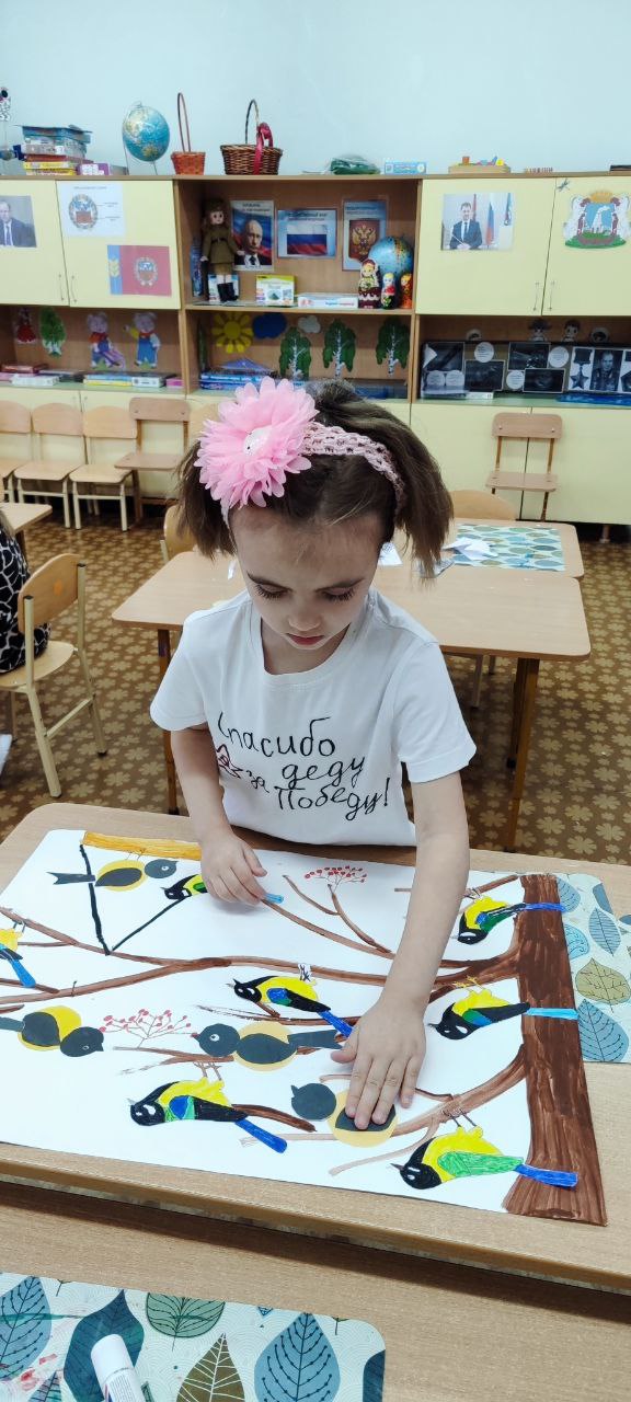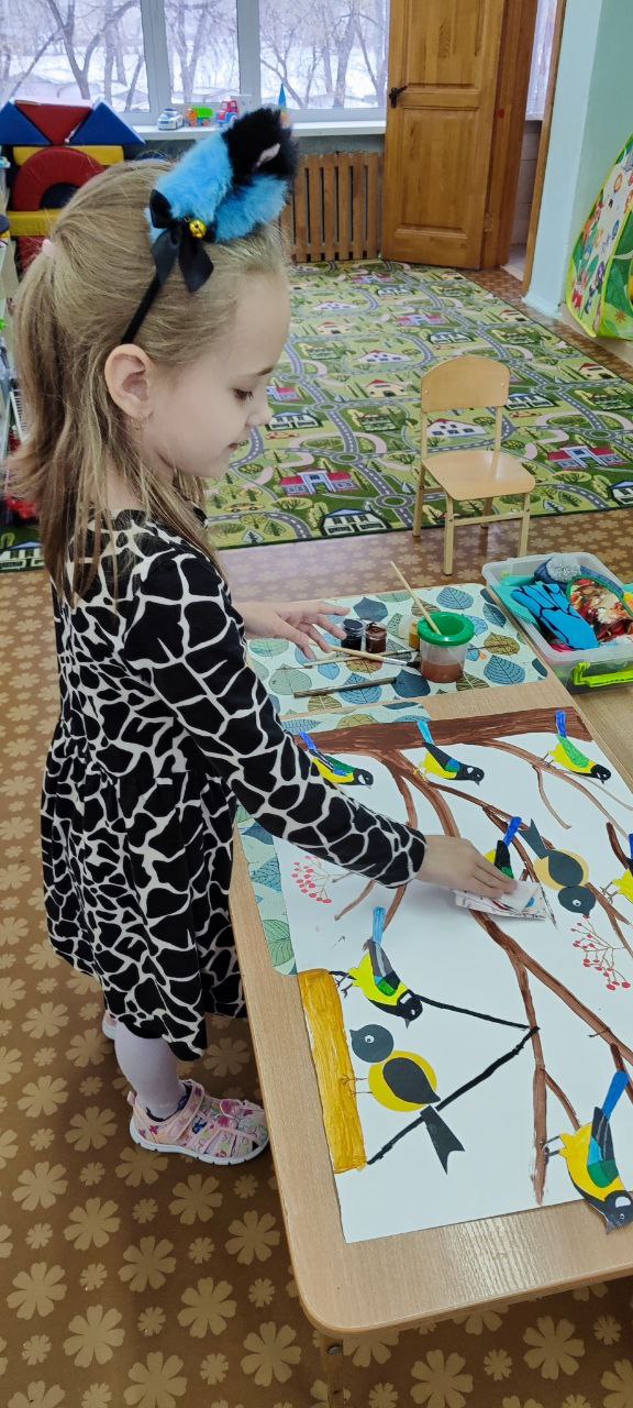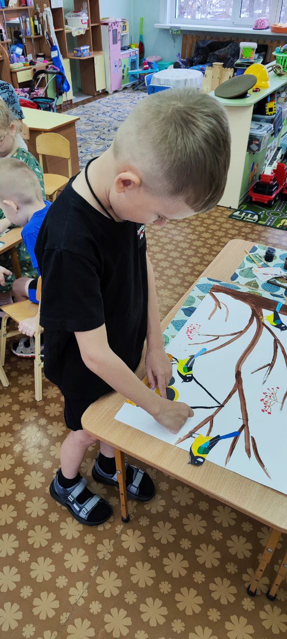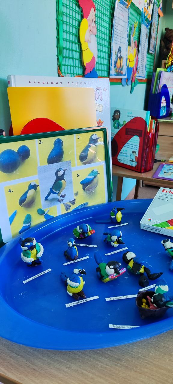 – творческие занятия : дети лепили, рисовали и делали поделки в виде синичек.