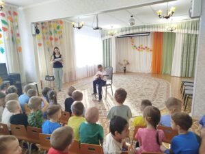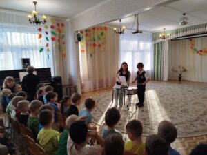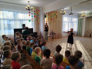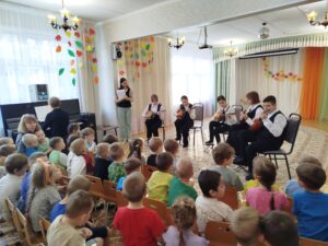 В саду с концертом выступили обучающиеся музыкальной школы и их педагоги. Воспитанники проявляли любознательность и активно приняли участие в познавательной беседе. С большим интересом слушали выступления юных музыкантов, расширили знания о музыкальных инструментах: фортепиано, домре, гитаре, барабане, блок-флейте, скрипке. Маленькие слушатели с удовольствием погрузились в мир музыки, стихов, музыкальных загадок и игр.
