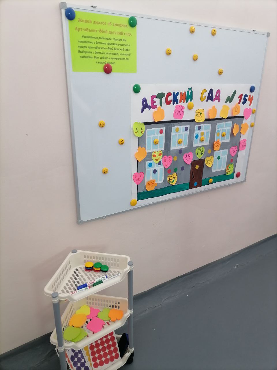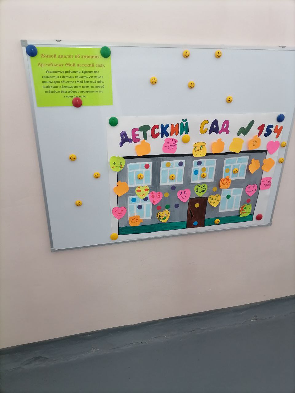 В нашем детском саду  появился необычный и яркий арт-объект — «Мой детский сад». Этот проект был создан для того, чтобы каждый воспитанник, педагог и родитель мог поделиться своим отношением к детскому саду, эмоциональным состоянием и стать частью большой и дружной картины нашего сообщества!
