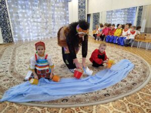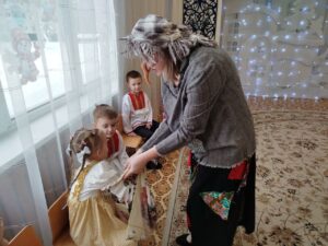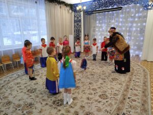 На Святки принято было гадать. Мы с ребятами тоже погадали, узнали в шуточной форме, что их ждёт в будущем. Но самым неожиданным моментом стало появление Бабы Яги. В этот раз она не стала портить детям праздник, а наоборот, приняла активное  участие в играх, хороводах, гаданиях.