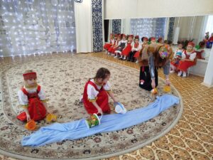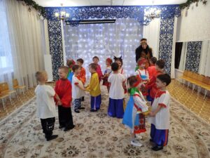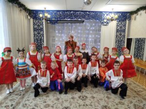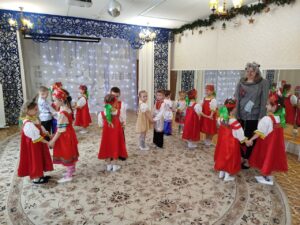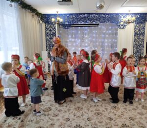 В нашем детском саду стало доброй традицией после новогодних праздников проводить рождественские Святки. Пожалуй, нет другого праздника, который отмечался бы таким богатством обычаев, обрядов,  переодеваниями, сказочными превращениями, всеобщим весельем, шумными гуляниями, весёлыми колядками, как рождественские Святки.
