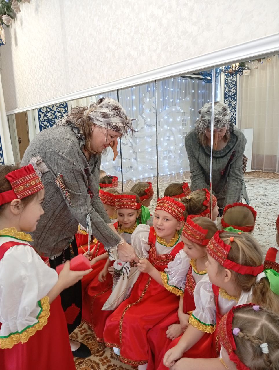 На Святки принято было гадать. Мы с ребятами тоже погадали, узнали в шуточной форме, что их ждёт в будущем. Но самым неожиданным моментом стало появление Бабы Яги. В этот раз она не стала портить детям праздник, а наоборот, приняла активное  участие в играх, хороводах, гаданиях.
