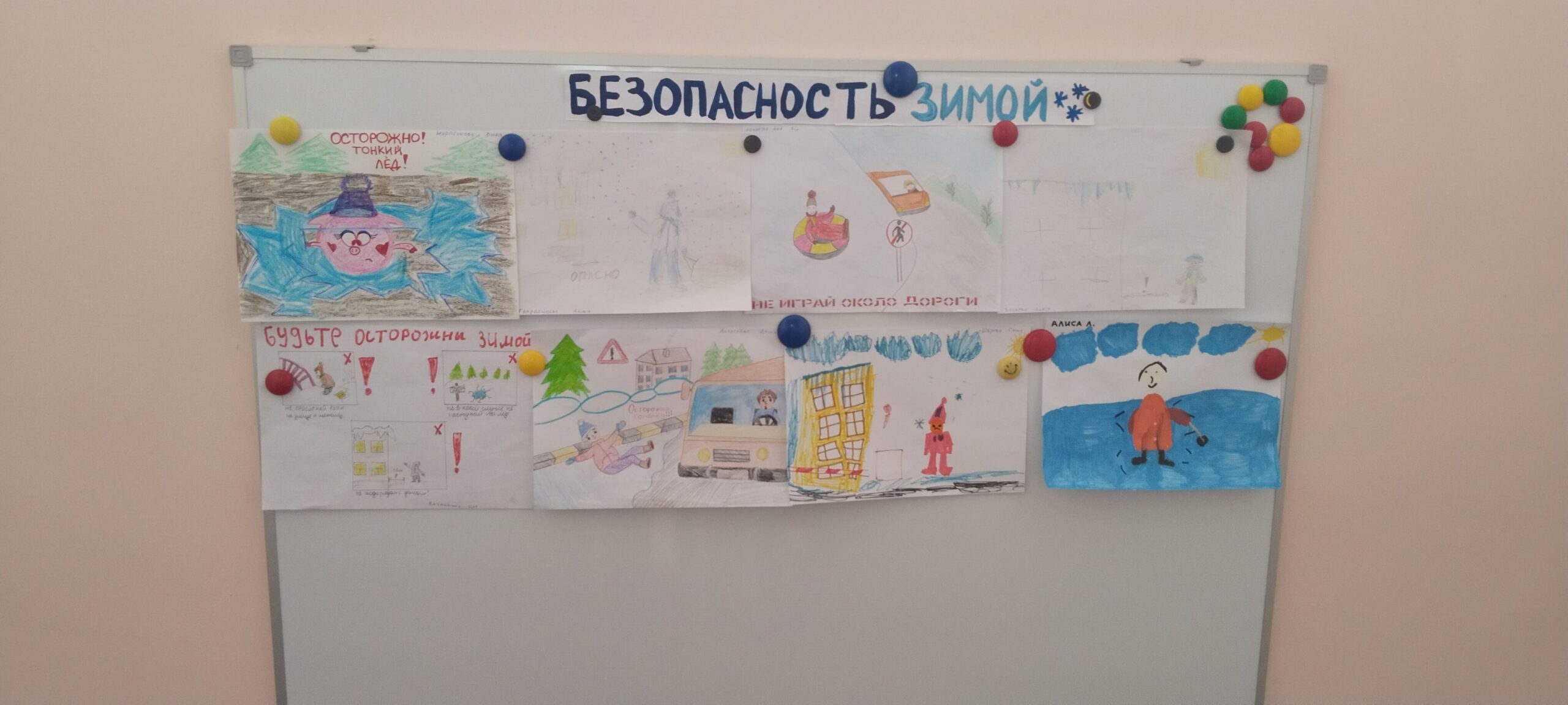 Дома с родителями ребята с удовольствием нарисовали красочные рисунки о правилах безопасности зимой, которые представили своим сверстникам.