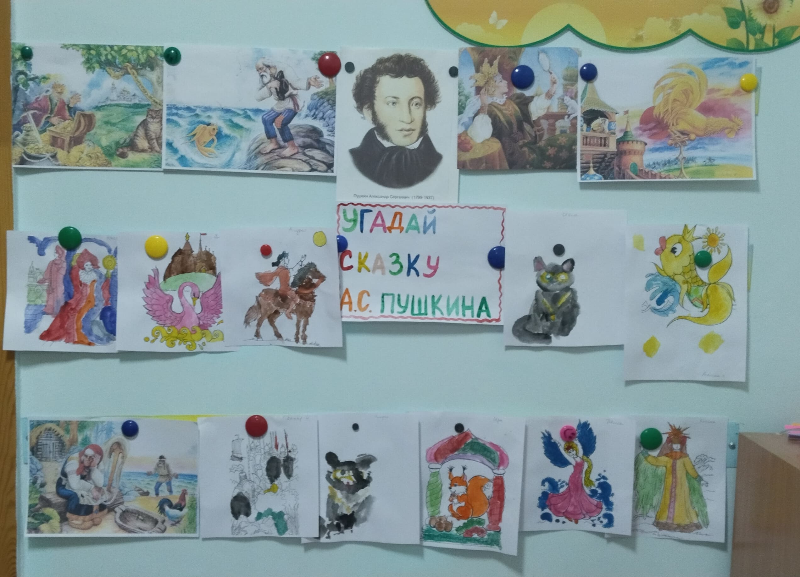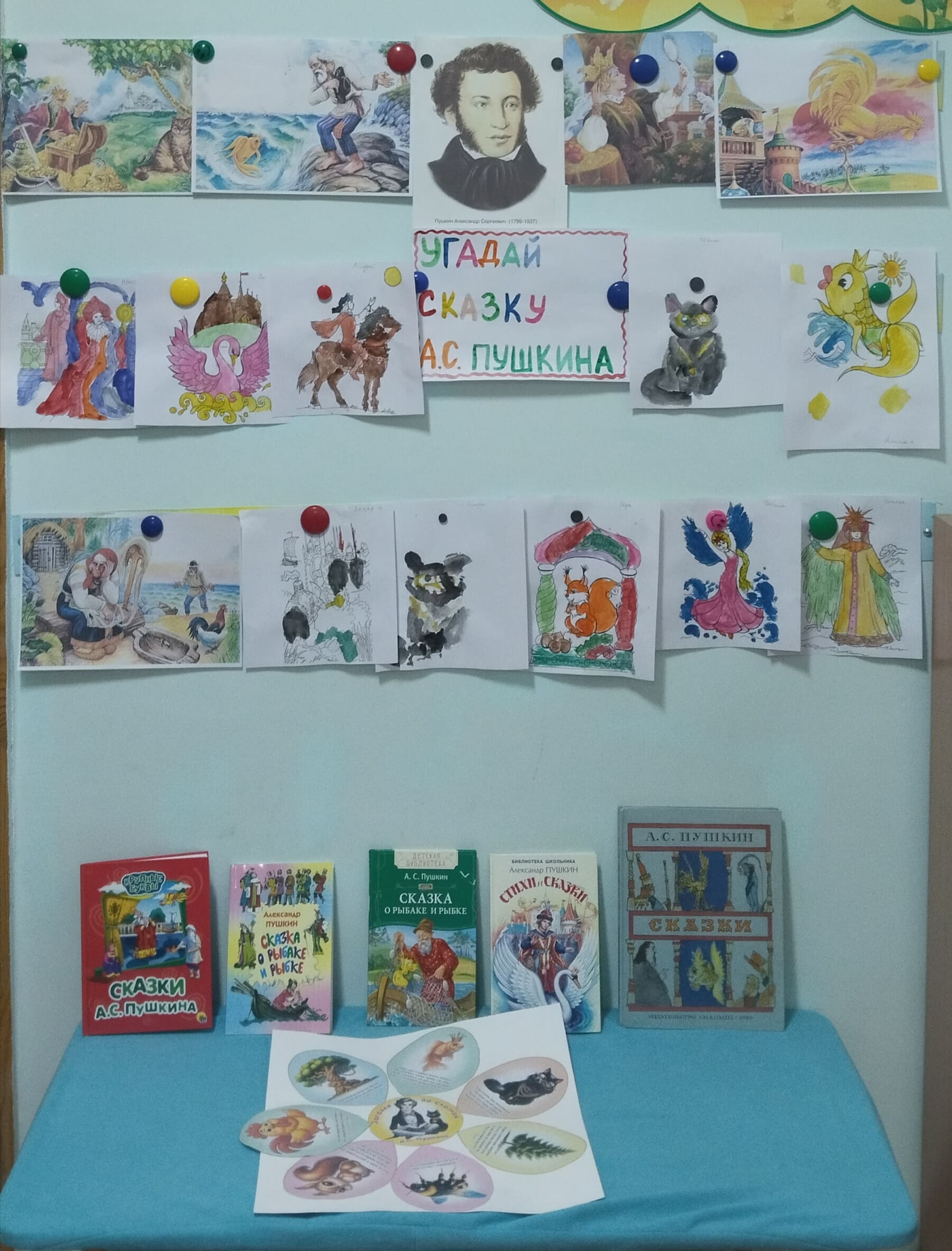 Оформили выставку: “Отгадай сказку А. С. Пушкина”.