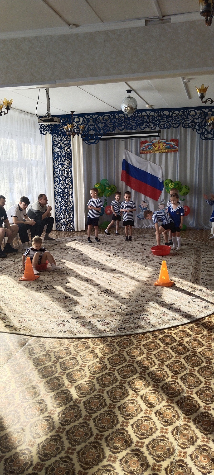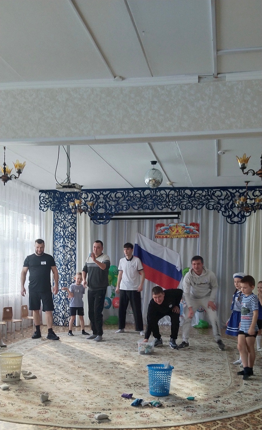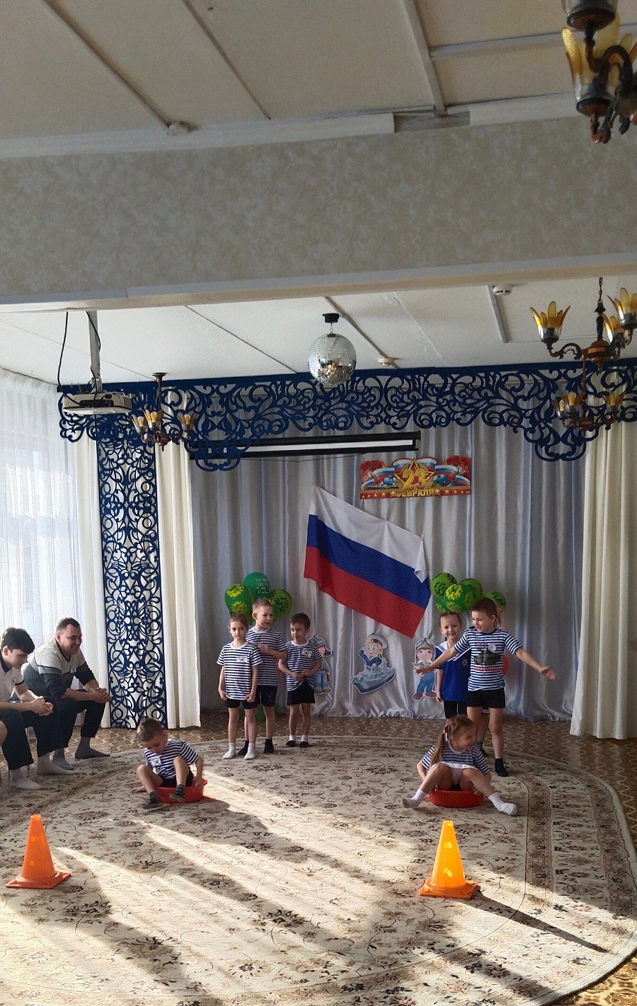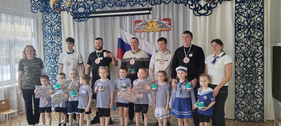 В группе прошел музыкально-спортивный праздник для наших пап и мальчиков «Наша армия-сильна!». Папам и детям по командам предстояло пройти эстафеты и соревноваться в ловкости, силе, смелости и находчивости. Дети поздравили пап стихами, песней, подарками, вручили медали. Мальчики-это будущие защитники Отечества. Они тоже не остались без подарков и медалей. Все остались довольны таким мероприятием!