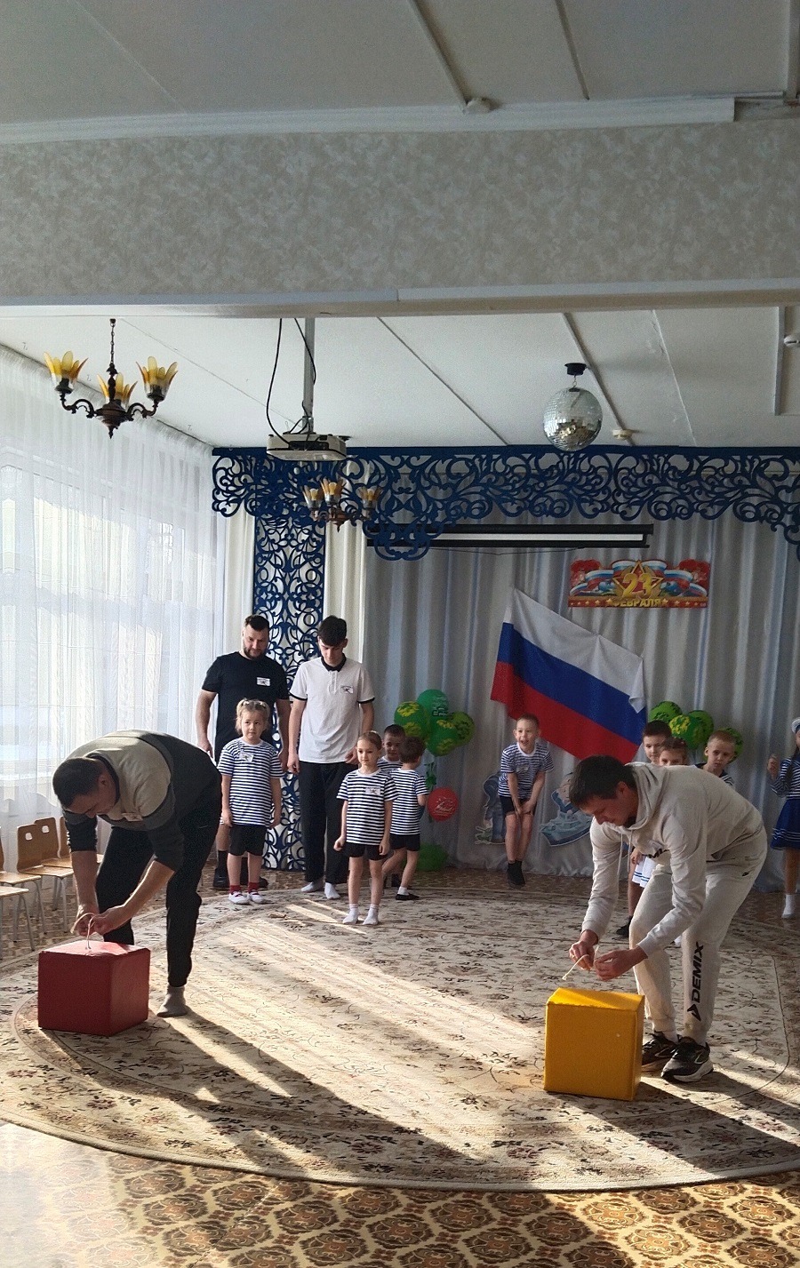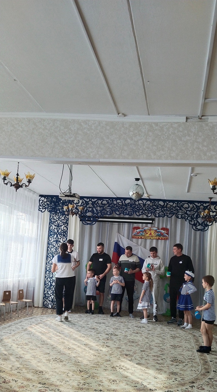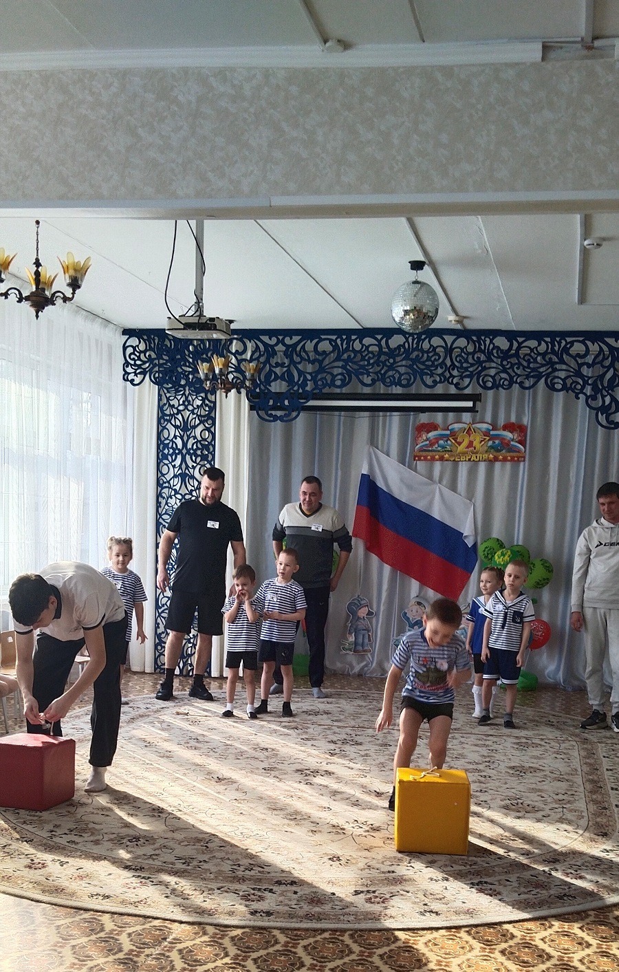 В группе прошел музыкально-спортивный праздник для наших пап и мальчиков «Наша армия-сильна!». Папам и детям по командам предстояло пройти эстафеты и соревноваться в ловкости, силе, смелости и находчивости. Дети поздравили пап стихами, песней, подарками, вручили медали. Мальчики-это будущие защитники Отечества. Они тоже не остались без подарков и медалей. Все остались довольны таким мероприятием!