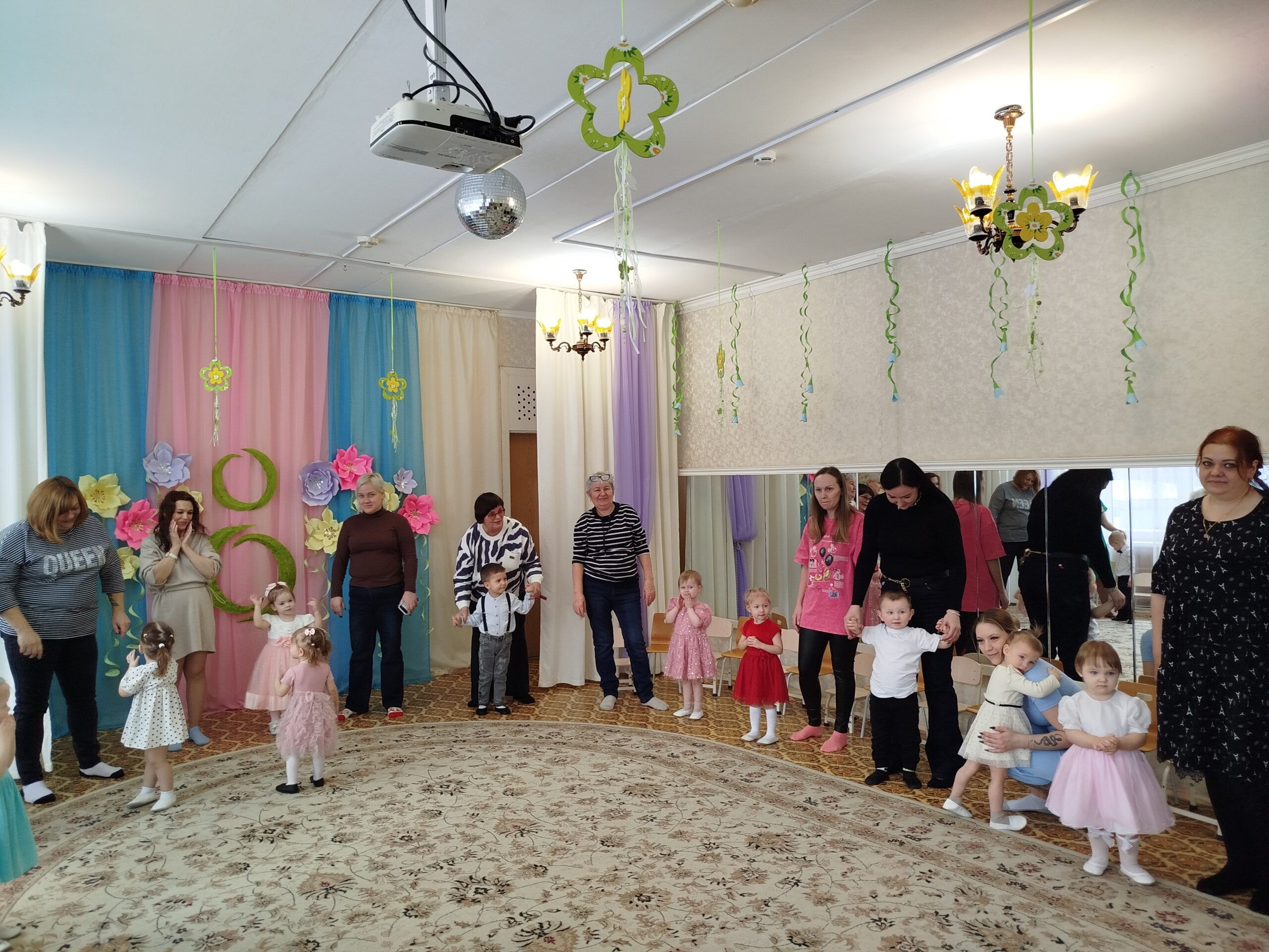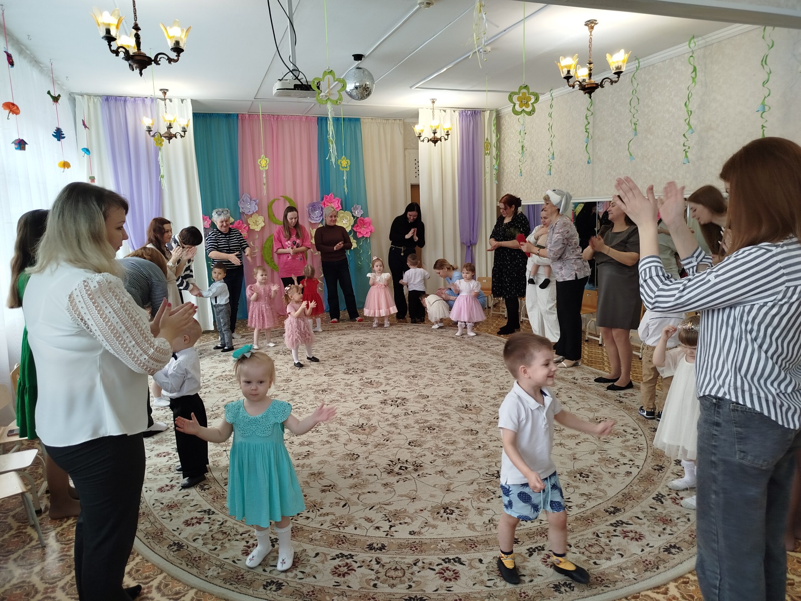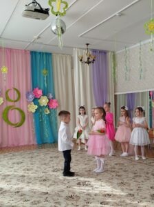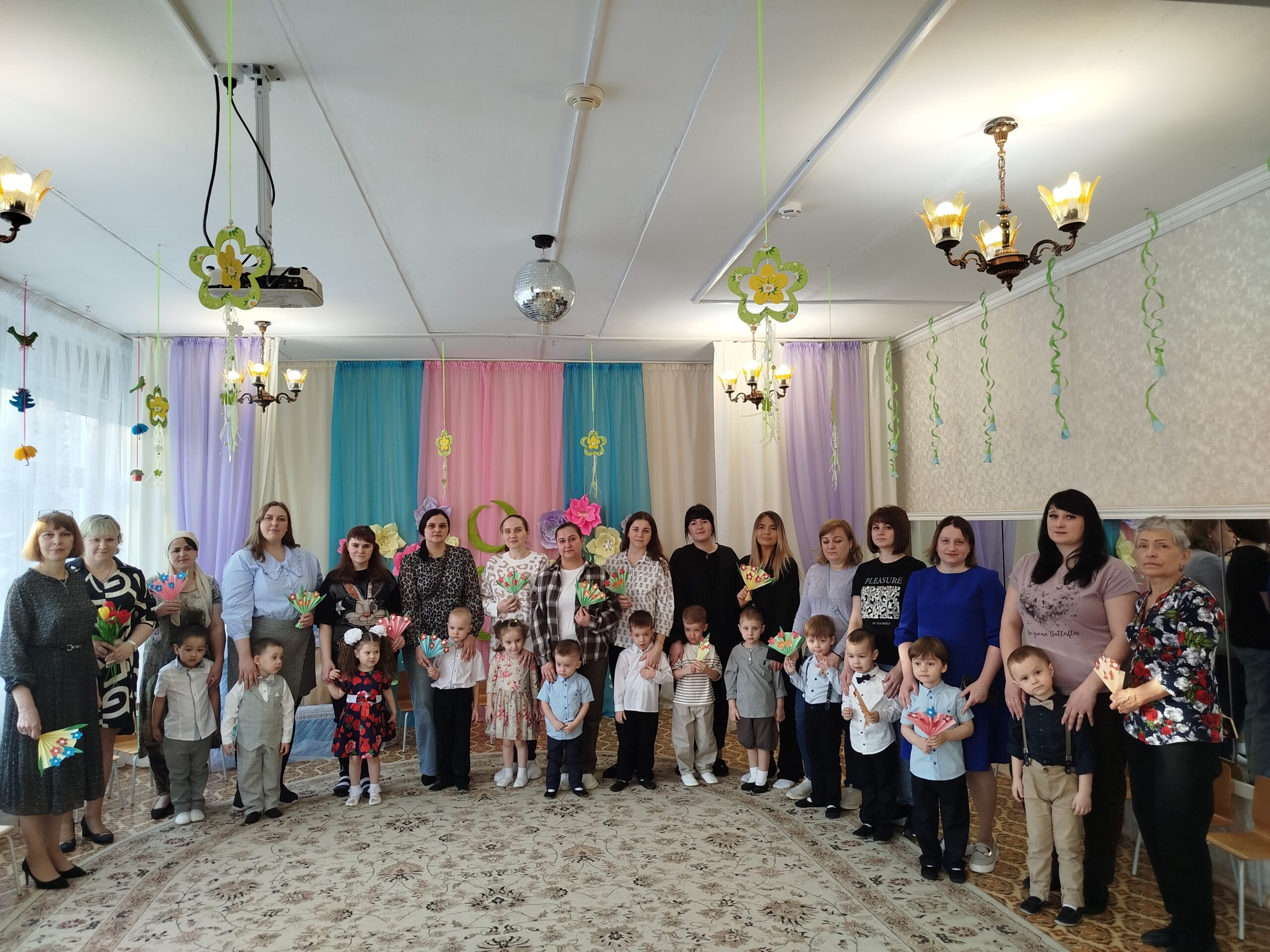 Праздник состоялся в красиво украшенном зале. Дети группы раннего возраста пришли на праздник вместе с мамой: они танцевали, исполняли песни, участвовали в забавных конкурсах, аттракционах, играх. Дети младшей и средней группы инсценировали сказку «Теремок». А самым занимательным моментом в старшей и подготовительной группах, стала фотосессия для наших гостей. Вместе с детьми, они по заданию фотографа, изображали предлагаемые эмоции и жесты. Трогательным моментом праздника для гостей стало вручение подарков, которые дети сделали своими руками.