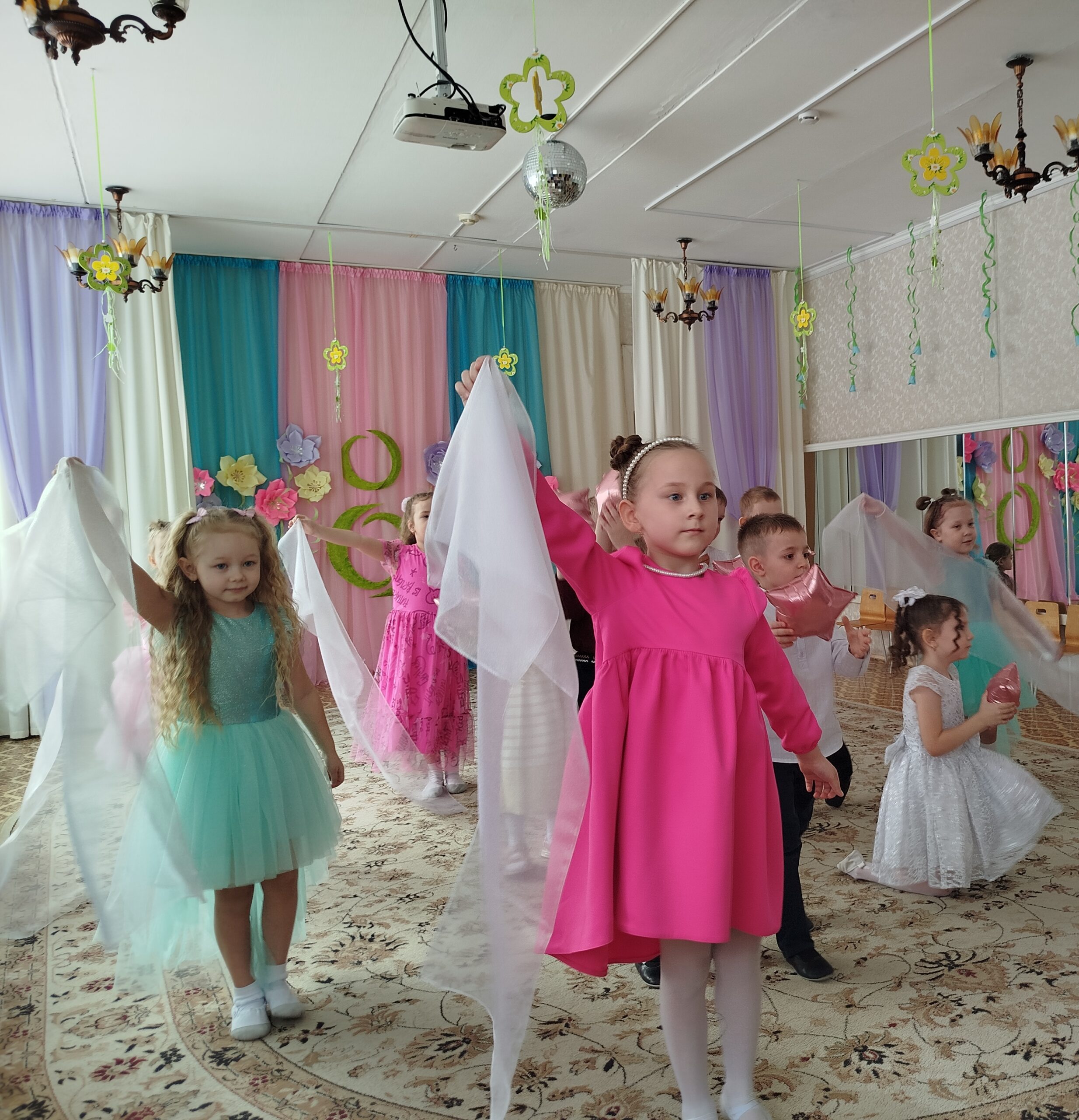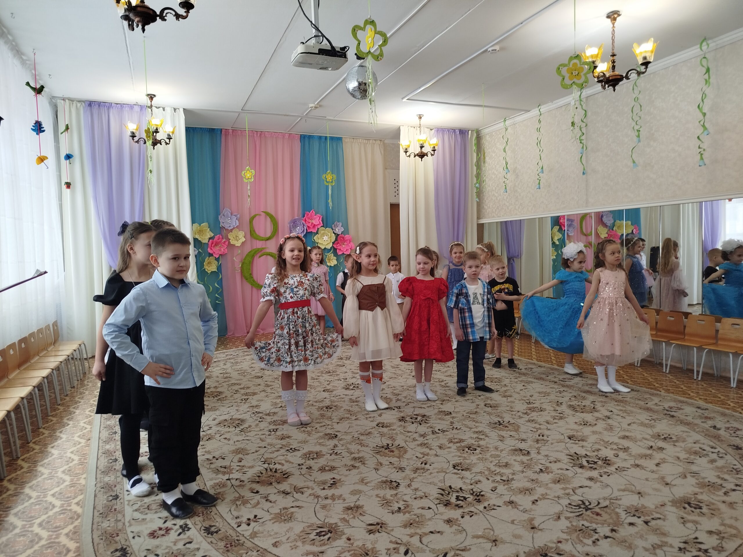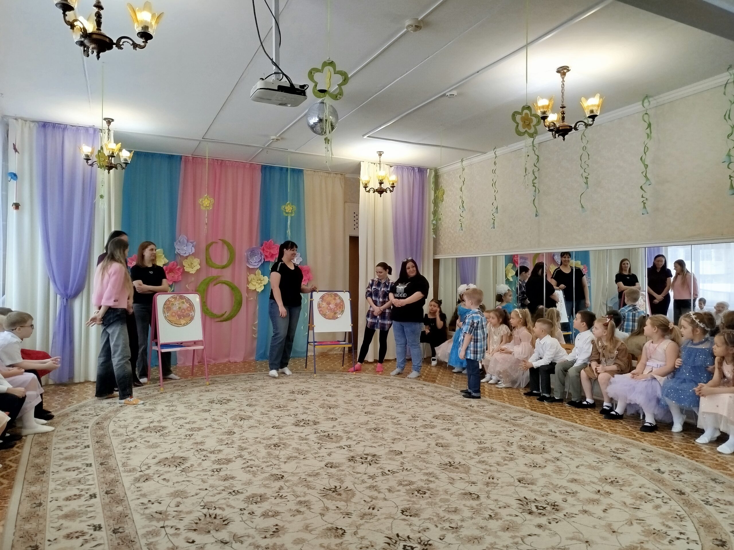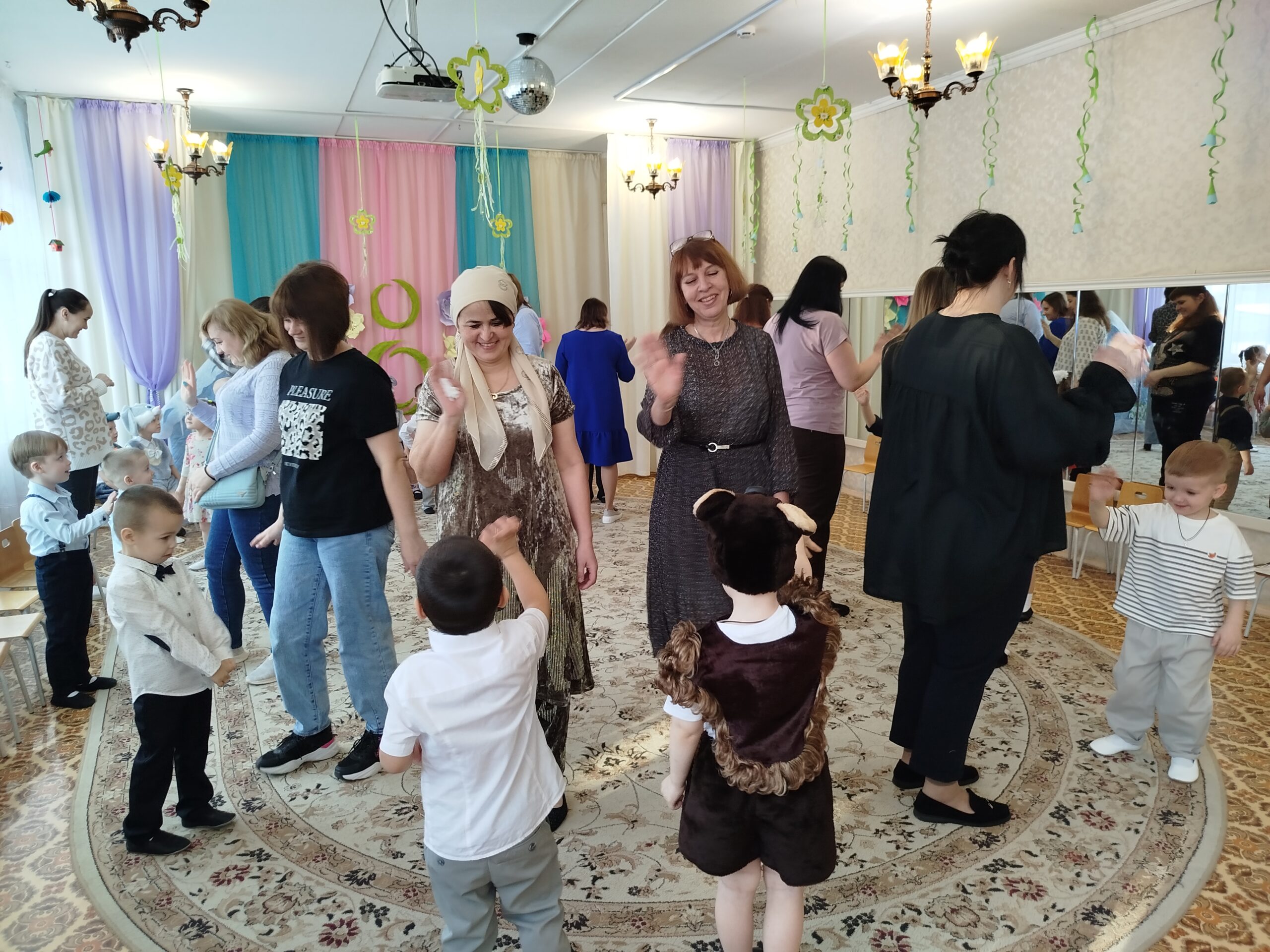 Праздник состоялся в красиво украшенном зале. Дети группы раннего возраста пришли на праздник вместе с мамой: они танцевали, исполняли песни, участвовали в забавных конкурсах, аттракционах, играх. Дети младшей и средней группы инсценировали сказку «Теремок». А самым занимательным моментом в старшей и подготовительной группах, стала фотосессия для наших гостей. Вместе с детьми, они по заданию фотографа, изображали предлагаемые эмоции и жесты. Трогательным моментом праздника для гостей стало вручение подарков, которые дети сделали своими руками.