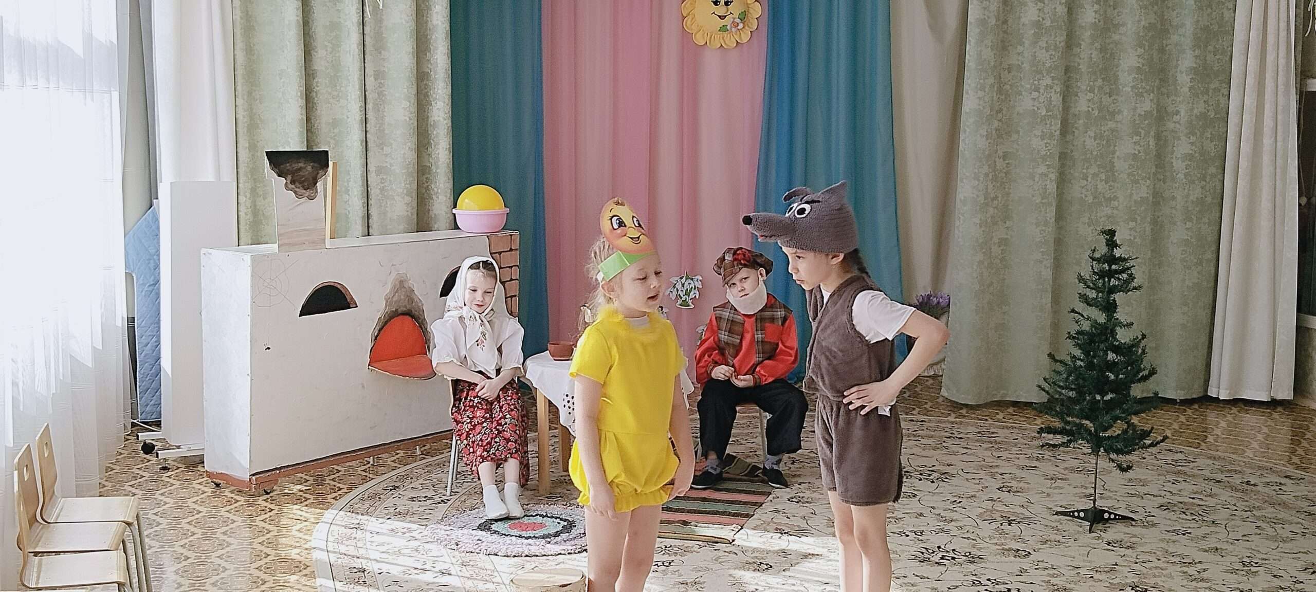 Дети с радостью перевоплощались в героев сказок и инсценировали отрывки любимых произведений. Ребята смогли показать свои театральные способности в сказках «Колобок» и «Дорога к теремку», передавая эмоции сказочных героев, детям младшей и старшим группам.